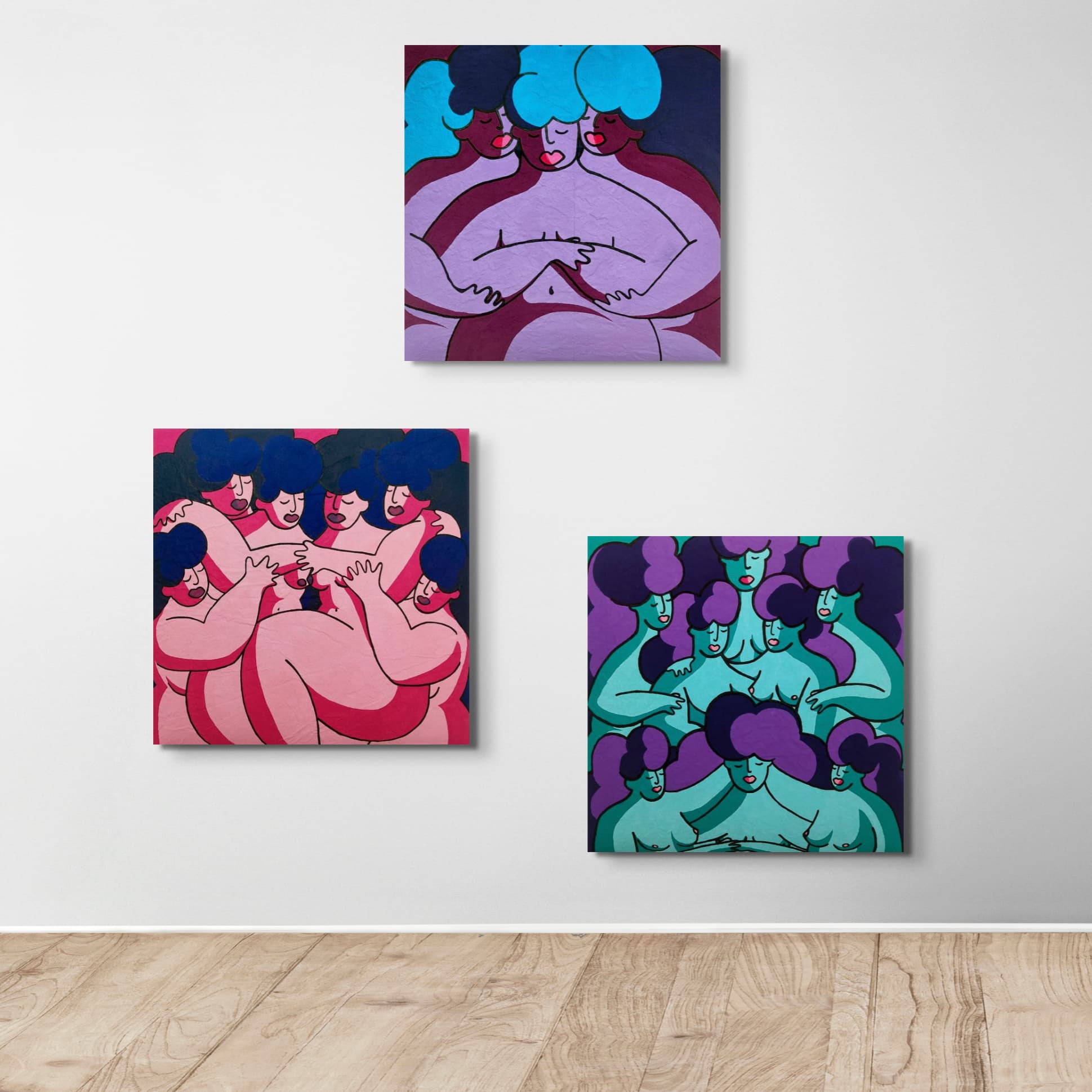 LA MADRE DE LA MADRE DE LA MADRE DE MI MADRE is a series of three paintings conceived as a tribute to the women of my lineage. It is an offering to those who came before me, whose lives, bodies, and choices quietly shaped my own existence.